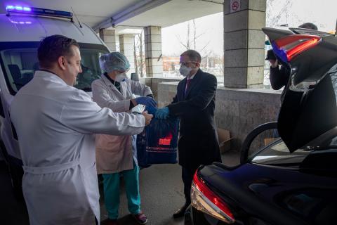Михаил Романов посетил НИИ скорой помощи имени И.И. Джанелидзе и передал защитные маски и халаты медперсоналу