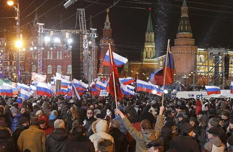 Путин и Медведев выступил пред собравшимися на Манежной площади. Путин говорил о том, что он и его команда одержали честную победу. Также он добавил, что у людей, которые хотят добиться развала государственности, не удастся это сделать. Его одобрительно приветствовала толпа.