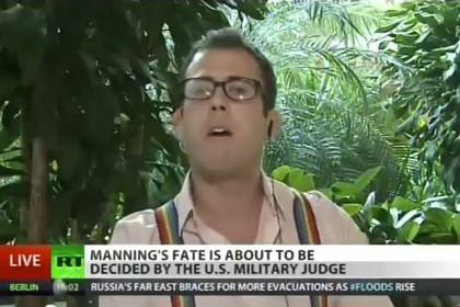 Russia Today -российская международная многоязычная информационная телевизионная компания в очередной раз стала героиней скандала.Шло обсуждение приговора, вынесенного вчера Брэдли Мэннингу. В качестве приглашенного гостя на эту тему из студии в Стокгольме должен был высказываться Джеймс Кирчик--журналист, пишущий для многих изданий, в т.ч. и израильского Нaaretz.