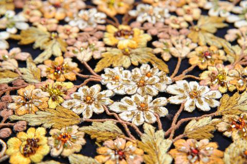 Применение машины не связывает творческой инициативы вышивальщицы, напротив, раскрывает широкие возможности для воплощения авторских замыслов. Любовь к цветам и изображению цветов – основа творческого процесса оренбургских вышивальщиц. Букеты, гирлянды или венки – соединение полевых и садовых цветов в сложные, прихотливые композиции – настоящий цветочный фейерверк разнообразных форм, фактур и цвета. Примечательно, что выполненные авторами в машинной технике решения трудно или практически невозможно повторить в ручном исполнении. Это лишний раз подтверждает технические и художественные возможности машинной вышивки.