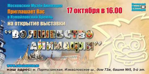 В субботу, 17 октября, Московский музей [2] анимации официально откроет новую выставку «Волшебство анимации». Она посвящена работе студий «Союзмультфильма», The Walt Disney Company, Warner Bros. Entertainment, Inc., Studio Ghibli, Lucasfilm и др. В качестве экспонатов будут демонстрироваться техника 18 –21 вв., куклы, декорации, изображения и документы мультипликаторов.