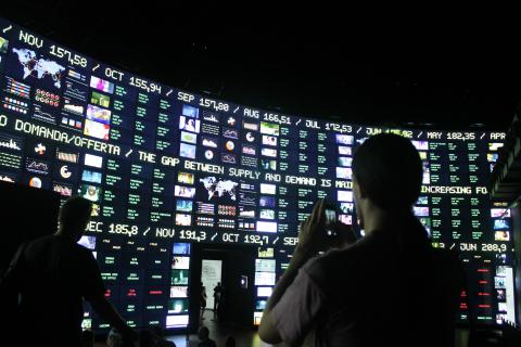 На втором этаже павильона проходит выставка "3-ий интеранационал" и показывается фильм RT о сохранении популяции дальневосточных леопардов в России