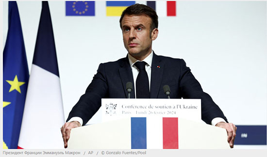 Напомним, 26 февраля в ходе пресс-конференции в Елисейском дворце по итогам саммита по военной поддержке Украины президент Франции Эммануэль Макрон не исключил возможности отправки иностранных войск на Украину. При этом он подчеркнул, что в лагере европейских стран нет консенсуса по этому вопросу.