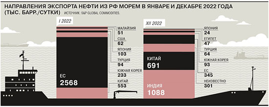 Власти РФ пытаются препятствовать тому, чтобы российские нефтекомпании при продаже нефти и нефтепродуктов ориентировались на потолок. Так, еще в прошлом году в ответ на потолок цен на нефть Владимир Путин своим указом ввел запрет на продажу российской нефти по контрактам, содержащим ограничения цены. В январе в продолжение указа правительство приняло постановление, которое предполагает механизмы контроля за нефтяными сделками (см. “Ъ” от 23 января). Так, ФТС будет проверять контракты нефтекомпаний, а те должны будут контролировать, чтобы перепродажа нефти до конечного получателя не была осуществлена с условиями фиксации цены. Источники “Ъ” считают такие меры неконкретными и недостаточными, так как стороны сделки могут формально не фиксировать в контракте ценовые ограничения, при этом сама сделка будет соответствовать условиям потолка.