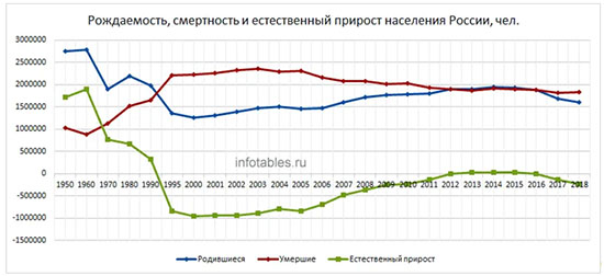Но Западу удалось существенно ослабить потенциал России, прежде всего, демографический и экономический, за годы «реформ», за которыми последовал длительный период стагнации. Как видно из графиков, России не удалось выйти на уровень развития в области прироста населения. Не удалось увеличить и качество НЧК, который остался на уровне 1989 года, а увеличение ВВП по разным оценкам за 20 лет составило от 30 до 40%, а в некоторых источниках даже более 100%. Так, в постоянных ценах (в долл. США) рост ВВП России с 1990 по 2017 год составил с 1,7 до 4,1 трлн долл. а по душевому доходу – с 11,4 до 27,8 тыс. долл., хотя если численность населения сократилась, то это можно объяснить только радикальной убылью граждан[6].