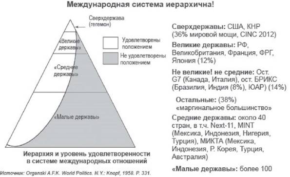 Существует много попыток сравнить и сопоставить военную мощь государств, их коалиций и даже ЛЧЦ. В том числе и существует немало традиционных и не традиционных попыток описать формирующуюся иерархию современной МО. В частности, заслуживает внимание предложение профессора Д. Дегтярёва, который следующим образом разделил государства, избегая цивилизационного подхода. Но даже в нём, подспудно, просматривается выделение «Сверхдержав» и «великих держав» (а также «не великие и не средние» державы. В основании такого разделения находятся экономические критерии, демографический потенциал, инфраструктурный, финансовый, военно-политический и иные потенциалы, которые не совпадают у «великих» и «сверхдержав» в полной мере.