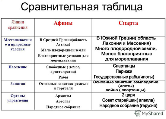 В основе войны лежали глубокие политические и экономические противоречия между Афинами и Спартой, которые в период существования внешнего врага – Гитлеровской Германии и Японии (Делосской симмахии: 478-454 гг. до н.э.)- не были ярко выражены, так как основной задачей, стоявшей перед союзниками, было победоносное окончание войны с державой Ахеменидов. Исследователи подчеркивают, что эти противоречия были во многих областях, т.е. системными. В качестве одного из примеров можно привести следующую таблицу.