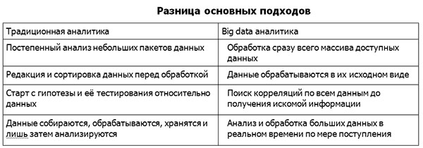 ББД позволяют оперативно получать качественно новую информацию, обрабатывать её и передавать исполнителям. Анализ больших данных позволяет получить новую, ранее неизвестную информацию (табл.).