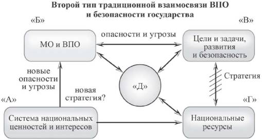 Кроме того, следует принимать во внимание и одну универсальную особенность, характерную для последних двух десятилетий по отношению ко всем участникам МО: классический вариант безопасности субъектов МО-ВПО – эффективная военно-политическая стратегия (вектор «Г»–«В»), обеспечившая достижение политических целей, сменился в XXI веке на необходимость приоритетного обеспечения безопасности системы национальных ценностей (блок «А» и вектор «А»–«Б») Это выводит традиционную стратегию на качественно новый уровень, когда приоритетом становится не только политическая победа и уничтожение военной организации государства, а ликвидация её системы ценностей, того, что относится к цивилизационной основе нации[9]: