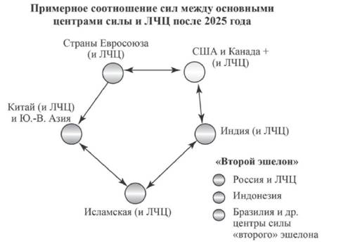Кроме того, на соотношение сил будут оказывать влияние и другие ЛЧЦ, нации и центры силы, которые условно можно отнести к субъектам МО «второго эшелона», но чья роль может существенно усиливаться в период 2035–2050 годов.