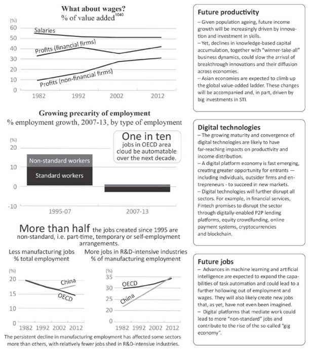 Наконец, ключевая тенденция в отношениях между ЛЧЦ – сохранение Западом технологического лидерства[16]. Согласно этому сценарию, из западноевропейских стран и США продолжится уход предприятий обрабатывающей промышленности, но они сохранят свои позиции научно-технического и финансового лидерства в мировой экономике. Снизится угроза дефицита низкоквалифицированной рабочей силы, проблемой станет привлечение высокообразованных и наиболее одаренных людей из других стран. Остальному миру Запад предоставит свой финансовый и интеллектуальный капитал, получая за это доход (ренту). Прочие страны, не обладающие возможностями по развитию высоких технологий, импортируют или копируют их.