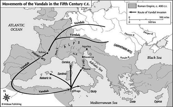 В 406 году орды варваров под общим командованием Радагайса переправились через Рейн и ворвались на территорию Западной Римской империи. Во вторжении участвовало множество племен, германцы атаковали на нескольких направлениях, и пока римляне отражали Радагайса в Италии, к северу от Альп племя за племенем проникало во внутренние провинции империи. Вторжение продолжалось, и трон короля занял его единственный законнорожденный сын сын  Гундерих. Старший брат нового короля, которого звали Гейзерих, был рожден от наложницы и не мог претендовать на престол, но вскоре, в качестве соправителя стал вторым по влиянию после короля, а после смерти брата создал империю и правил 50 лет.