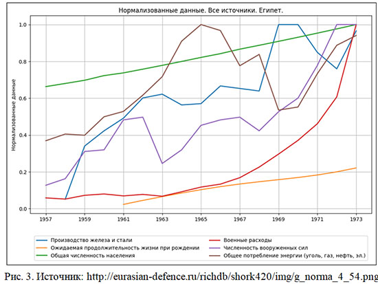 Ниже приводятся примеры использования интерфейса сайта для анализа процессов в экономике и социальной сфере, сопровождавших противостояния, получившие впоследствии названия «Холодная война» и «Ближневосточный конфликт». Используя собранную из открытых достоверных источников базу данных и язык программирования Python, было построено и опубликовано на сайте более 50 графиков в форматах PNG и PDF. Некоторые из них используются в примерах.