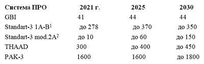 [7] По некоторым оценкам, в 2021 году системы ПРО США и РФ могли перехватывать до 50 боевых блоков (ББ) баллистических ракет.