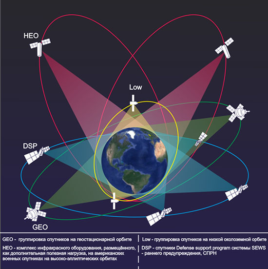 – Распределенные системы предупреждения космического базирования – в итоге были реализованы в составе системы SBIRS; (SBIRS – англ. Space-Based Infrared System – инфракрасная система космического базирования, часть СПРН США, высокоорбитальный компонент)