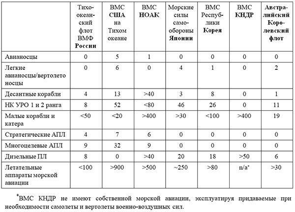 Понятно, например, что возможности России в регионе и ТОФ следует рассматривать, исходя из развития того или иного сценария, а не сами по себе. Следует признать, что в текущем виде Тихоокеанский флот имеет весьма ограниченные возможности, сводящиеся, по сути, к прикрытию развертывания группировки морских стратегических ядерных сил в угрожаемый период и защите их позиционного района в военное время. В рамках локального и регионального противостояния с Японией и гипотетического столкновения вокруг южных островов Курильской гряды флот не имеет достаточных сил для самостоятельного завоевания господства на море, что, как и во время Русско-японской войны 1904–1905 гг., делает актуальной проблему переброски дополнительных сил ВМФ и ВКС из других регионов России. При этом «ядро» ударных сил Тихоокеанского флота в виде стратегических ракетоносцев практически бесполезно в подобном конфликте, а силы общего назначения ТОФ значительно уступают морским силам самообороны Японии в численности.